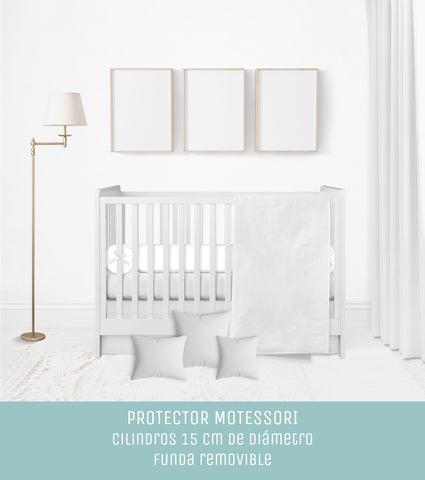 Protector Montessori: Relleno de guata, 13-15 cm approx, cubre los 4 lados, los 4 cilindros vienen separados